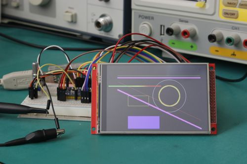ただし斜線の場合は Lcd_DrawPoint (x, y, color);を使用して(都度GRAMの範囲指定もして)点を描き斜線を描いている。