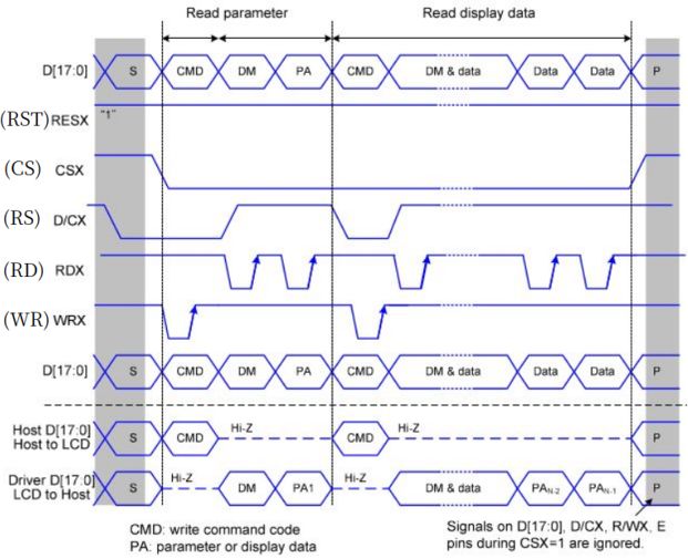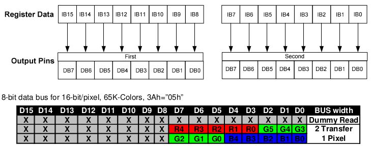 | Read display image | 0x0D | R | 2 | Dummy | ||||||||