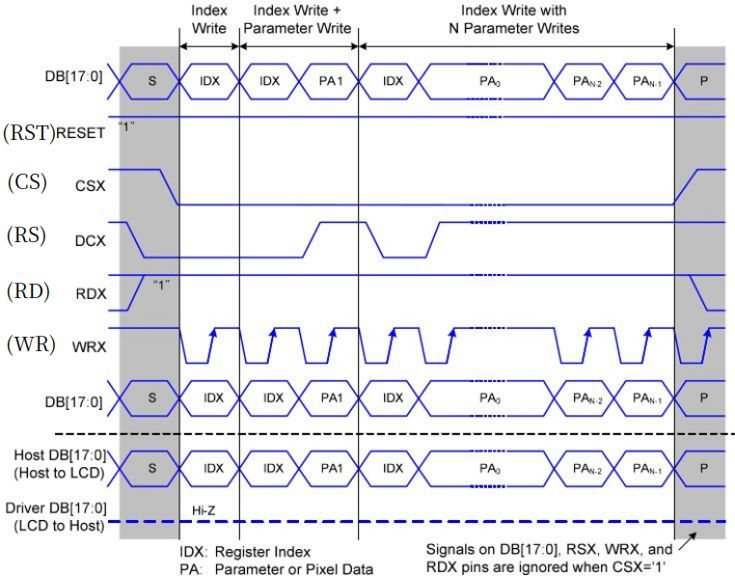ST7796S端子の名前末尾のXは負論理を示しているようだ。